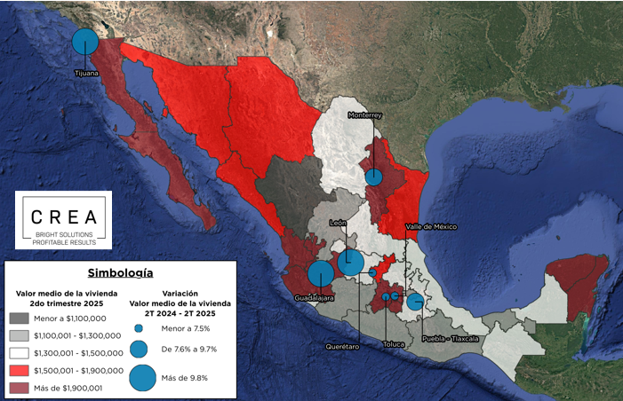 Al segundo trimestre del 2025, el valor de la vivienda aumentó más del 10% para algunas entidades de México respecto al 2T del 2024 tales como: Tamaulipas, Jalisco, Tlaxcala, Nayarit, Baja California Sur y Quintana Roo.